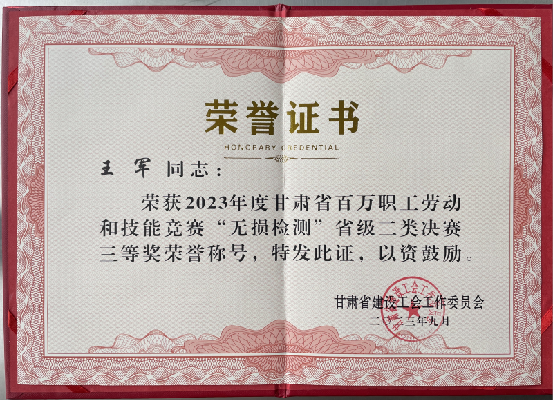 此次獲獎,不僅是對選手專業(yè)知識能力的認可,也是對單位組織能力的認可。甘肅建科院將以此為契機,充分調(diào)動職工的學習熱情,促進無損檢測試驗人才隊伍建設,為企業(yè)的高質(zhì)量發(fā)展提供支持。