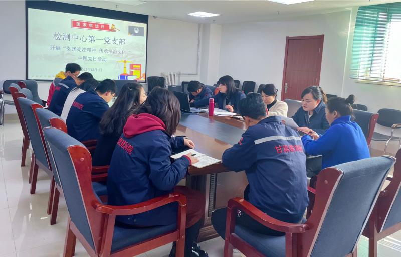 在第十個國家“憲法日”來臨之際,為全面貫徹黨的二十大精神,堅持以習近平新時代中國特色社會主義思想為指導,深入學習習近平法治思想和習近平文化思想,加強憲法學習,弘揚憲法精神,強化全體黨員及干部職工憲法意識。12月1日下午,檢測中心第一黨支部召開“弘揚憲法精神 傳承法治文化”主題黨日活動。支部全體黨員、入黨積極分子、青年團員及部分職工群眾通過線上+線下的方式參加了此次會議。