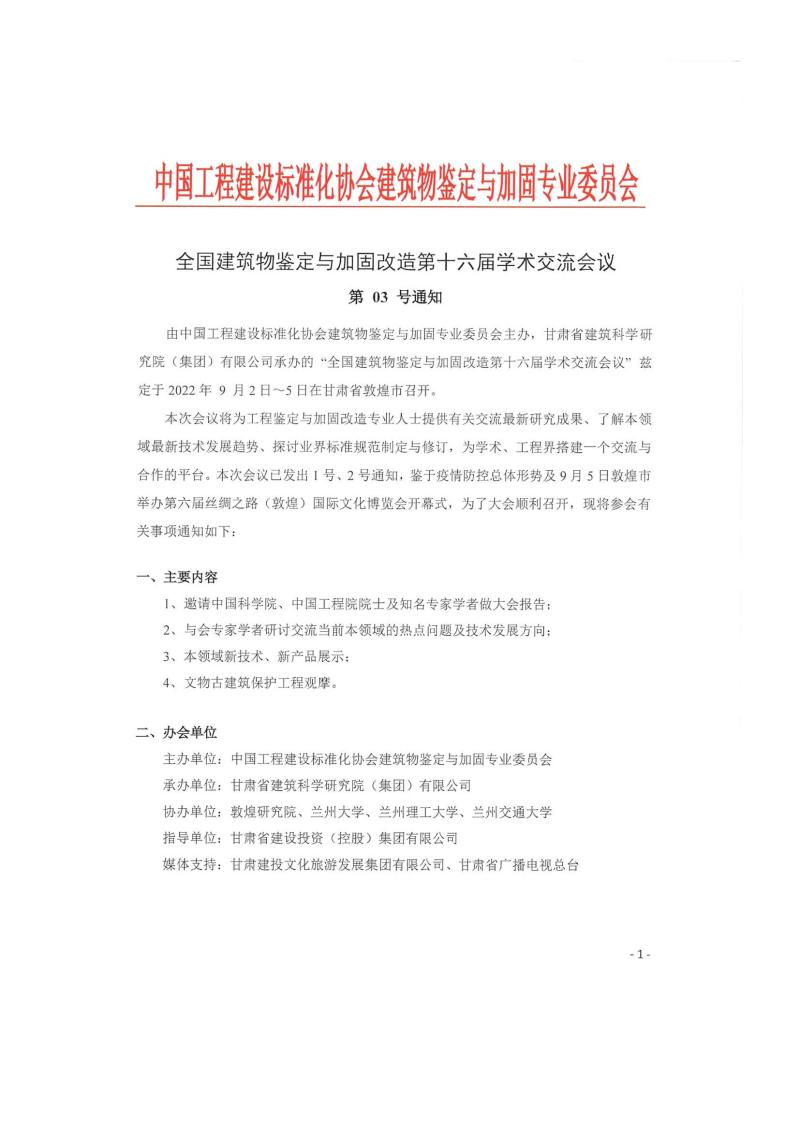 全國建筑物鑒定與加固改造第十六屆學(xué)術(shù)交流會 03號通知