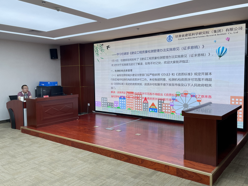 會上觀看了《2023年全國質(zhì)量月宣傳主題》短片,中川園區(qū)市場監(jiān)管局質(zhì)量辦主任俞春梅從提升企業(yè)質(zhì)量管理水平、強化質(zhì)量宣傳的角度作了發(fā)言講話。蘭州新區(qū)市場監(jiān)管局質(zhì)量標準計量科科長張紅娟介紹了新區(qū)建設(shè)工程質(zhì)量檢測機構(gòu)質(zhì)量建設(shè)現(xiàn)狀。甘肅建科院蘭州新區(qū)檢測中心主任崔小明從141號令的變化講解了《建設(shè)工程質(zhì)量檢測管理辦法》,解讀了《建設(shè)工程質(zhì)量檢測管理辦法實施意見(征求意稿)》中提出的新內(nèi)容,并對綠色產(chǎn)品認證相關(guān)政策及基礎(chǔ)知識進行了介紹。