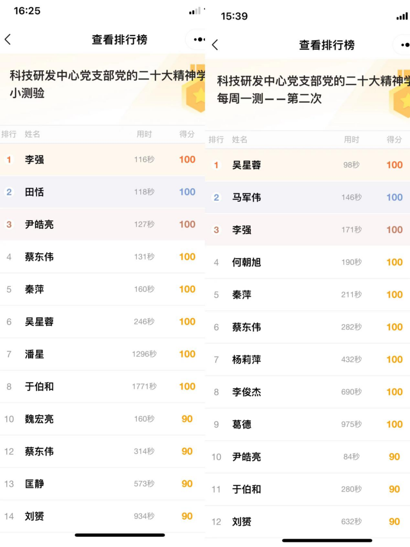 科技研發(fā)中心黨支部將原計劃線下開展的“二十大精神學習晚讀班”搬到了線上,并通過每周一測的方式來檢驗大家的學習效果。