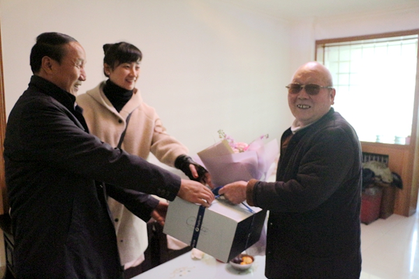 11月25日是退休老人吳振東的生日,我院紀委書記、工會主席路遠,工會副主席周婷及黨群工作部等人員一行,帶著提前為老人訂制好的生日蛋糕和生日鮮花,來到老人家中為他送上祝福。吳振東老人對院里送來的關(guān)心和溫暖表示十分感謝。工會主席路遠親切詢問老人的健康情況,并代表單位祝愿老人身體健康、生日快樂!