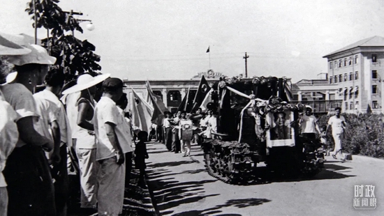 △1958年7月,第一臺(tái)國產(chǎn)“東方紅”牌拖拉機(jī)在洛陽拖拉機(jī)廠下線。(圖/視覺中國)