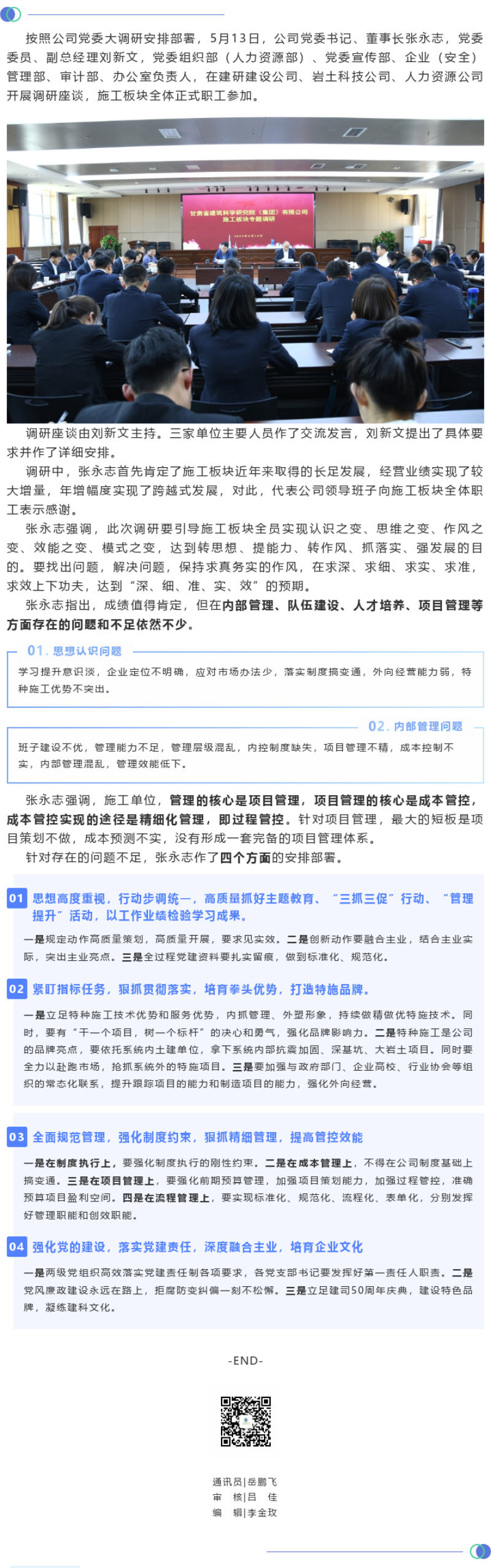 【主題教育】甘肅建科院黨委書記、董事長張永志組織開展施工板塊專題調(diào)研