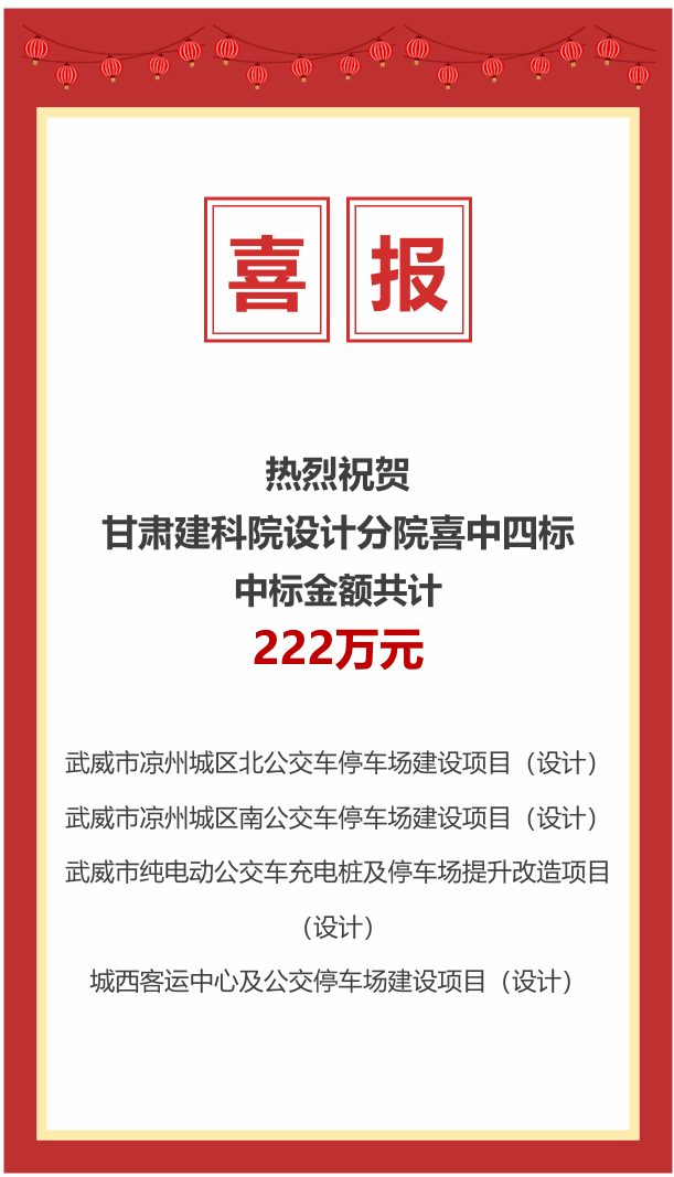 【喜報(bào)】熱烈慶祝甘肅建科院設(shè)計(jì)分院喜中四標(biāo)