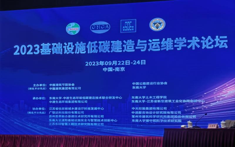 9月22日-24日,2023基礎(chǔ)設(shè)施低碳建造與運(yùn)維學(xué)術(shù)論壇在江蘇南京召開,科技研發(fā)中心主要技術(shù)人員參加了此次學(xué)術(shù)盛會(huì)。此次會(huì)議由東南大學(xué)倡議發(fā)起,東南大學(xué)、中國建筑節(jié)能協(xié)會(huì)、中國公路建設(shè)行業(yè)協(xié)會(huì)、中國建筑集團(tuán)有限公司主辦,東南大學(xué)——中建生態(tài)環(huán)境低碳建造技術(shù)聯(lián)合研發(fā)中心、東南大學(xué)土木工程學(xué)院、中建生態(tài)環(huán)境集團(tuán)有限公司、東南大學(xué)-江蘇省新型建筑工業(yè)化協(xié)同創(chuàng)新中心承辦。